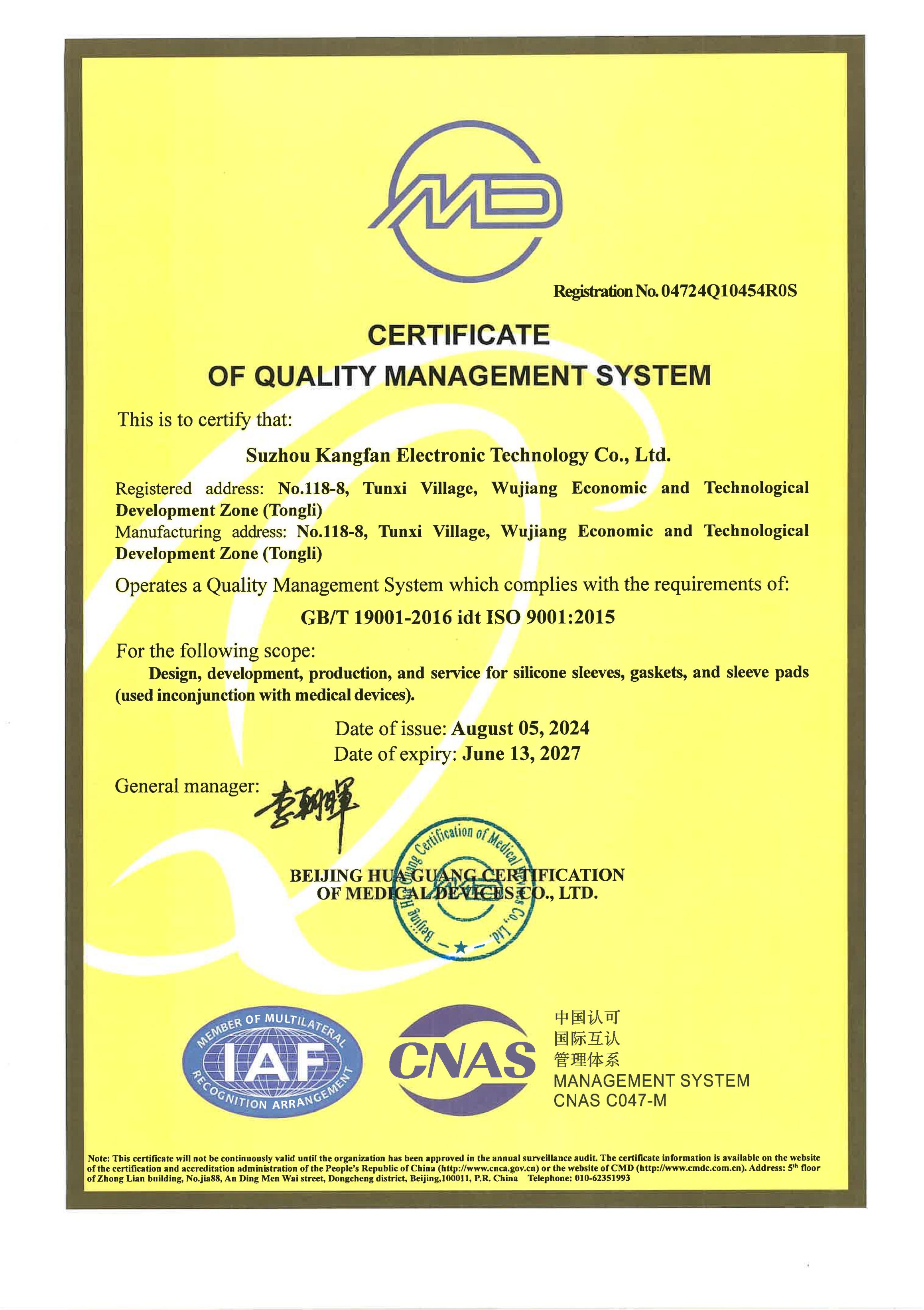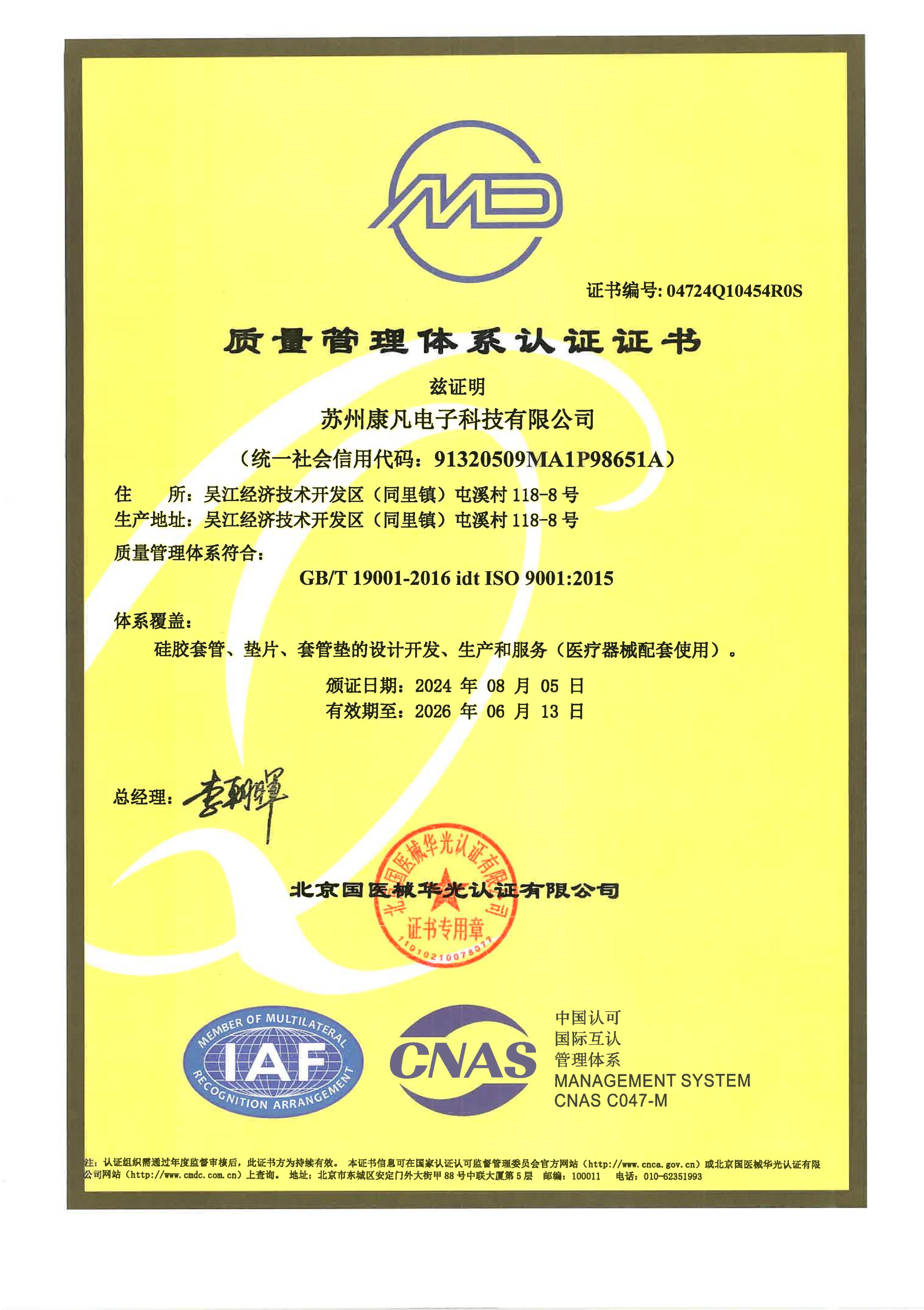 - 苏州康凡电子科技有限公司创建于2017年6月,主营橡塑产品加工,我司地处江南古镇同类,东邻上海青浦,西依太湖,交通十分便利。公司依据ISO09001:2008质量管理体系要求,引进全力发及国内高品质微电脑控制注塑机,配备进口辅助设备,品保部不断引进精密检测仪器,使产品品质得到了更有效的保障,同时确认了技术、质量、服务为公司生产经营的三大战略中心。公司建立了完善的质量、环境管理体系,其中,质量管理体系符合GB/T 19001-2008/ISO 9001:2008标准,环境管理体系符合GB/T 24001-2004 idt ISO14001:2004标准。公司凭借先进的生产设备,完善的质量保证体系,强大的生产能力,专业的技术服务,现代化的管理理念,以技术手段、人才引进培养、设备改善来确保品质的持续改善与协和公司自身的发展,提供让客户满意的产品及服务。